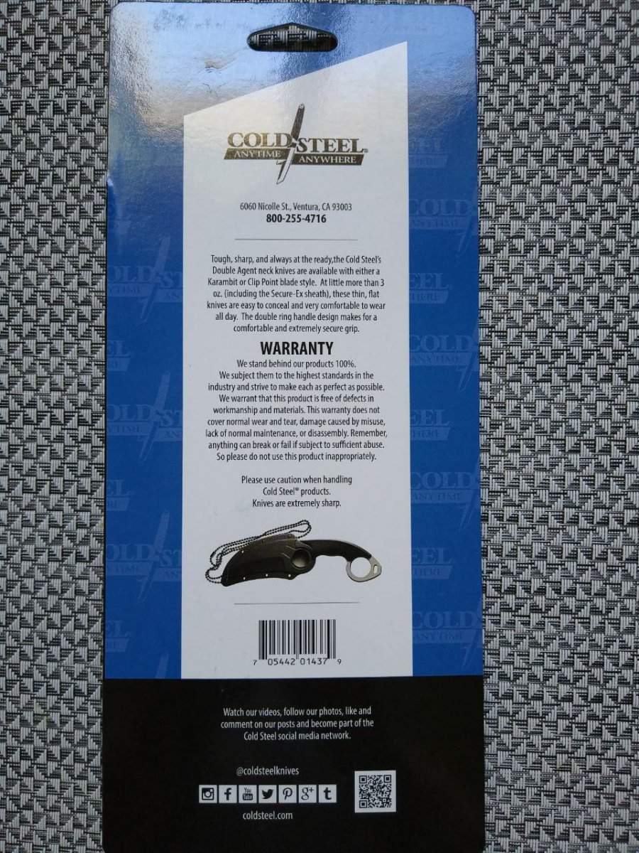 Нескладний ніж От компании Cold Steel. Модель Double Agent I (39FKZ).