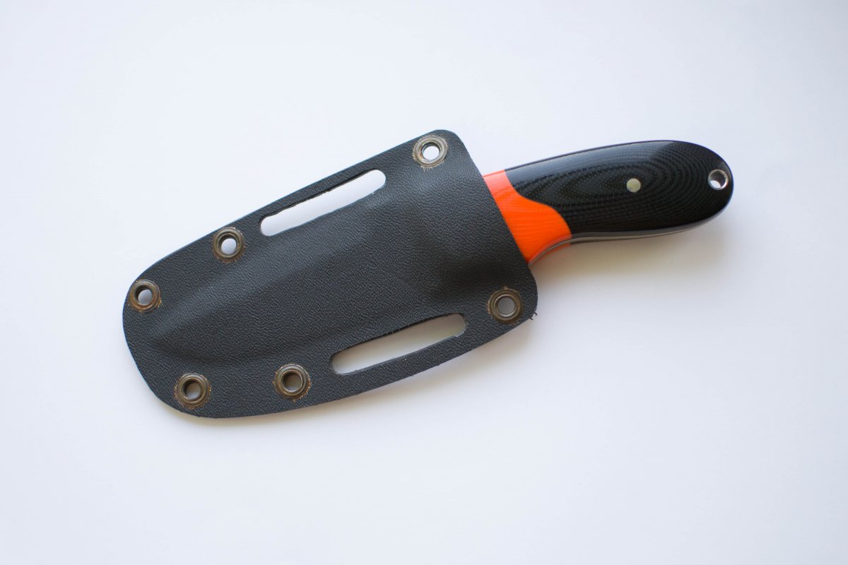 Продам нож с фиксированным клинком от мастера Nevin. Длина клинка (от кончика до начала накладки): 91мм; Толщина в обухе (максимальная): 4мм; Спуски: прямы от 3/4; Общая длина: 180мм; Толщина рукояти: 14мм; Материал клинка (по памяти): сталь N690; Материал накладок: полированный G10; Материал ножен: кайдекс; Вес ножа: 136 г; Вес ножен: 27 г. Цена: 800 грн.