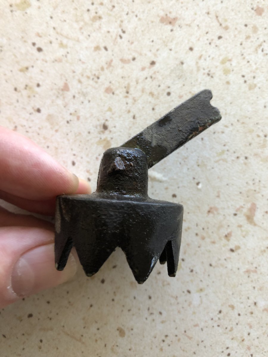 Желаю здравствовать! Вчера копнуть вышел, вот такая прикольная штучка выпрыгнула. Я так понимаю, что что то ей прессовали, так как обломанная лапка на 180 градусов проворачиваться в ушке. Буду признателен, если кто сможет просвятить, что и от чего это было. Сопутка - всякая мелочь от войны до застоя.