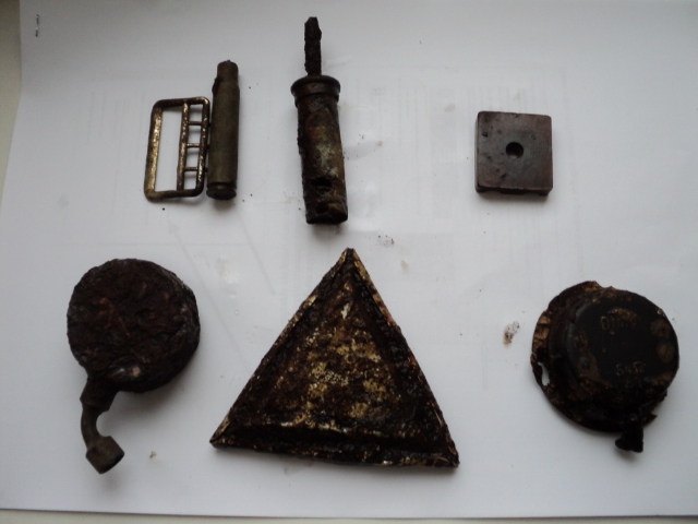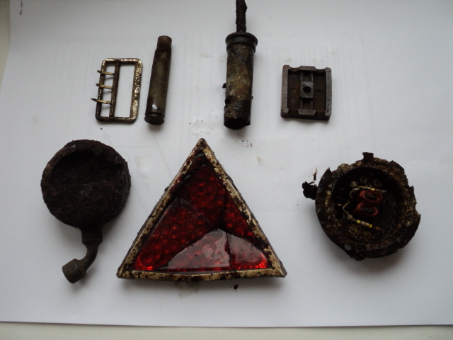 Вот вчера такой хлам попался. Странный треугольный катафот, пряжечка,от наушников, и две непонятные штуки в правом верхнем углу.