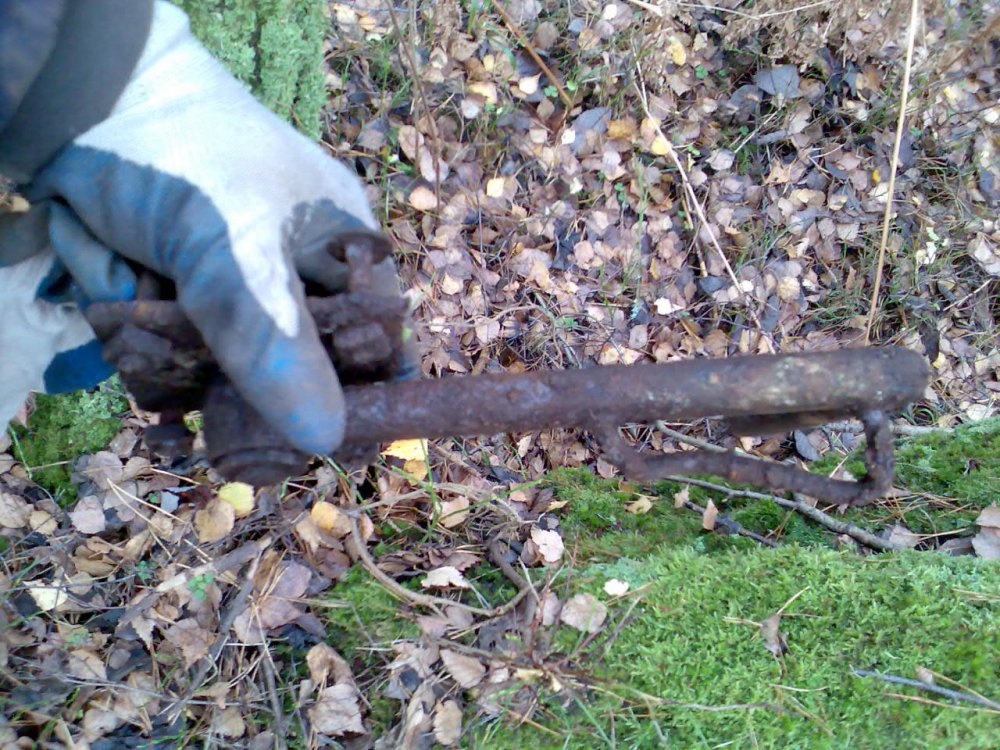 Вот откопал сегодня в лесу. Сделан добротно даже ручка есть для удобства. Сначала думал от борта автомобиля. Потом пригляделся и увидел в на конце крюка сквозное отверстие, видимо для пломбирования. Может от вагона?