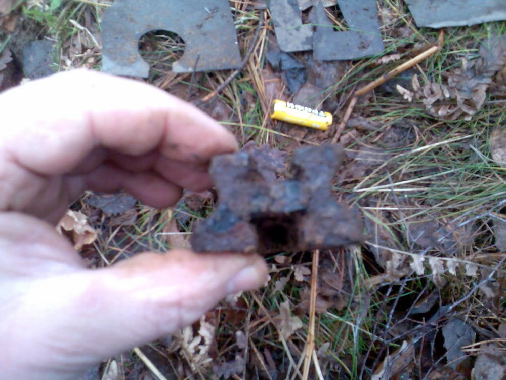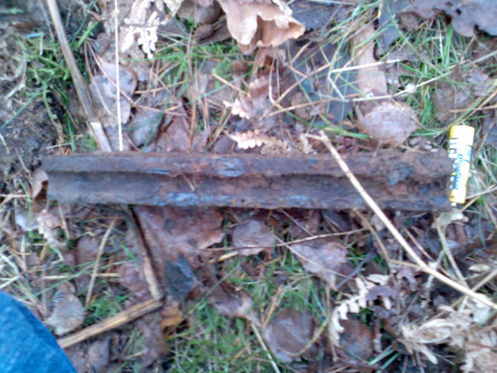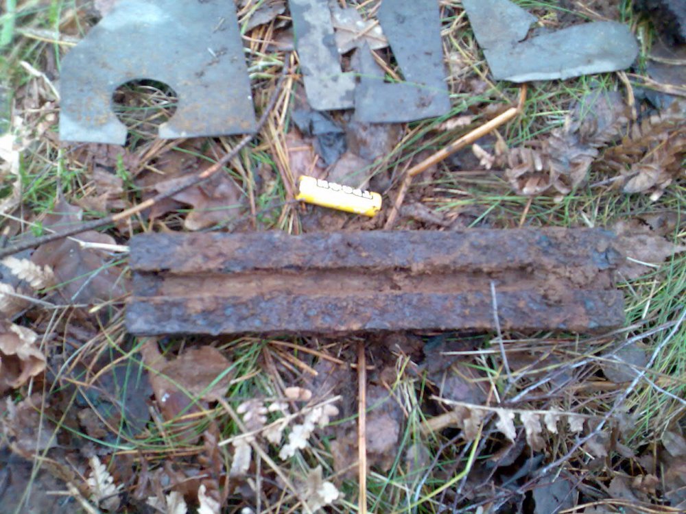 Вот такой рельс нашел сегодня на бруствере немецкого капонира. Еще попадались жестянки трафареты. Отчего рельс?