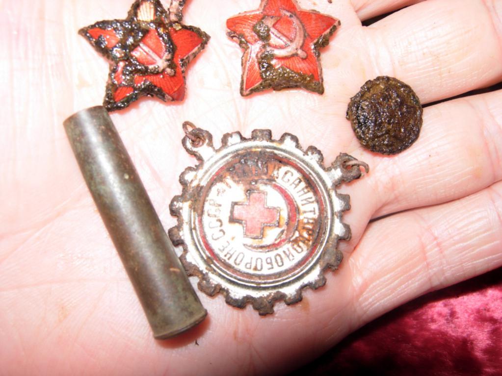 Выдалось нам с камрадом прогуляться старыми, добрыми, лесными дорогами по которых в далёком 41-м отходили на восток части Робоче-Крестьянской... Порадовал санитар, жаль без подвеса... да с ним в наборе две железные пугвички с гимнастёрки, пилоточная звёздочка и куча пряжечек...