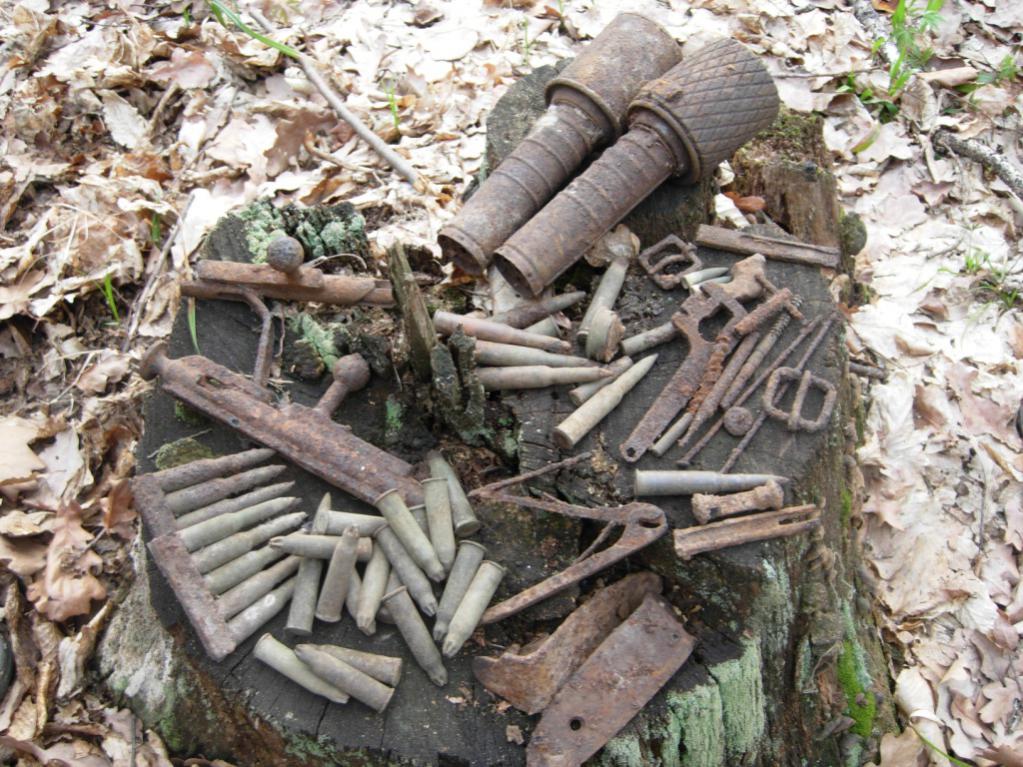 Вот чуток продолжили, день выдался пасмурный и находки особо не радовали, вылезла кучка холостых до моси, тульских 32-го года, набор для чистки СВТ и другой не хитрый хабр...