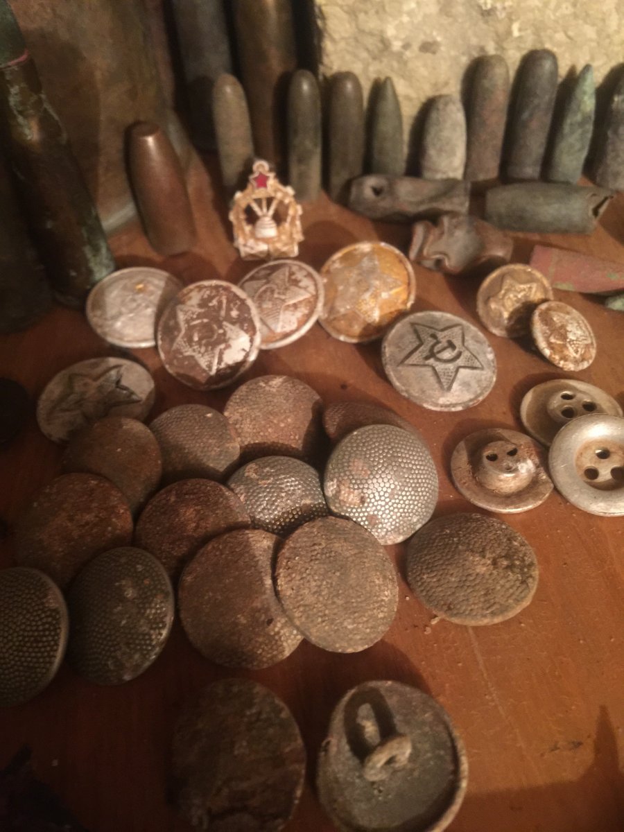 Лютеж , одиночный окоп, половинка жетона, пуговицы , ладанка и все вроде было это правда очень давно ..
