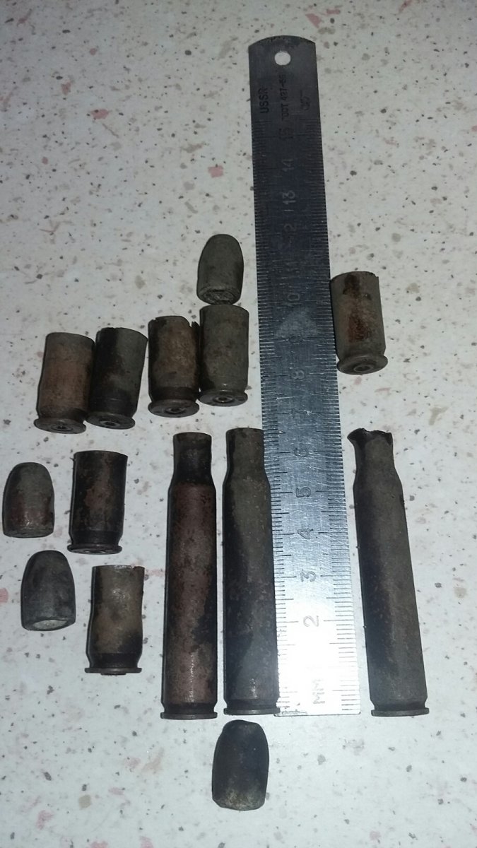 в моем случае был бой --- патроны стреляные ... а вот по томи--- на месте находки гильз 7шт я и пули ихние отыскал, но пули были со следами попадания трохи деформирова видать дядька лупанул и потом туда перебежал