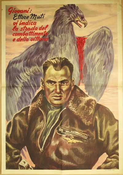 Камерады, На посте # 28 представлена открытка посвященная неординарному человеку Мути Этторе. (там, где человек в куртке летчика на фоне раненного орла) МУТИ (Muti) Этторе (22.5.1902, Равен¬на — 24.8.1943, Фреджене, Рим), итальянский политический деятель, подполковник. Вы¬гнанный из школы в 13 лет, в 14 он бежал из дома и попытался поступить в армию. Только в 1917 ему удалось записаться в отряд ардити 6-го пехотного полка бригады “Aosta”. Отличался беззаветной храбростью; в одной из операций из 800 чел. его отряда выжили только 23, но задание они выпол¬нили. После окончания 1-й войны участво¬вал в попытке итальянских националистов во главе с д'Аннунцио захватить Фриуме. В 1921 вступил в фашистскую группу в Ра¬венне и в 1922 основал местную организа¬цию фашистской партии. 29.10.1922 отряд во главе с Мути захватил префектуру Равенны, по¬сле чего принял участие в “Марше на Рим”. В 1922 поступил офицером в фашистскую милицию (M.V.S.N.), с 1923 командир когорты милиции в Равенне, с 1925 консул. Мути стал известен как бонвиван и любимец женщин, в сентябре 1926 он женился на дочери банкира Фернандо Маццоти, несмотря на протесты отца. 13.9.1927 на него было совершено по¬кушение: левый социалист Массароли вы¬стрелил ему два раза в живот. В 1932 Мути стал консулом фашистской милиции в Триесте. В 1935 добровольцем поступил в армию, участник военных действий в Эфиопии, пи¬лот бомбардировочной авиации, лейтенант. В составе итальянских экспедиционных во¬йск участвовал в военных действиях в Испа¬нии, а затем и в Албании. 31.10.1939 назначен генеральным секретарем Национальной фа¬шистской партии (P.N.F.). 12.6.1940 заменен А. Серенной. После ареста Б. Муссолини 25.7.1943 попы¬тался поднять на его защиту фашистов, а за¬тем организовать освобождение Муссолини. Погиб в бою (или был схвачен и расстрелян без суда) с карабинерами. В Итальянской со¬циальной республике в память Мути был сфор¬мирован отдельный легион “Этторе Мути” (Legione Autonomia Ettore Muti), который использовался против партизан и отрядов Со¬противления в районе Милана. Кроме того, его имя получили бомбардировочная эска¬дра и батальон мобильной черной бригады «Ахилле Коррао». Представлена открытка в честь Legione Autonomia Ettore Mutti.