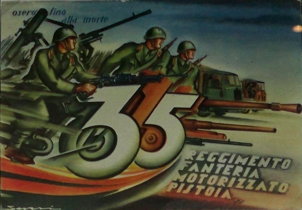 Камерады, на посте # 13 открытка посвященная 7-ой пехотной дивизии Люпи ди Тоскана (Тосканийские Волки). Волки, все -таки волки, так их увидел художник. Безусловно не Римские Ромул и Рэм , а Тосканийские. Может они все там такие? Дивизия как обычно пехотная имела два пехотных полка, 77-ой и 78-ой пехотные, а также 30-й артиллерийский Леонесса. Воевала - юг Франции, Греция. На открытке солдат королевской пехоты с мостринами цвета красного с одной белой полосой по средине - это Люпи ди Тоскана.http://digilander.libero.it/lacorsainfinita/guerra2/armi/fanteria2.htm