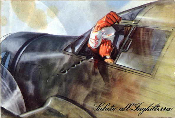 Вот такая открытка Regia Aeronautica с красноречивым, интернациональным жестом, да простят меня модераторы, но из песни слова не выбросишь, такая открытка была и при ней текст: "Привет Англии".