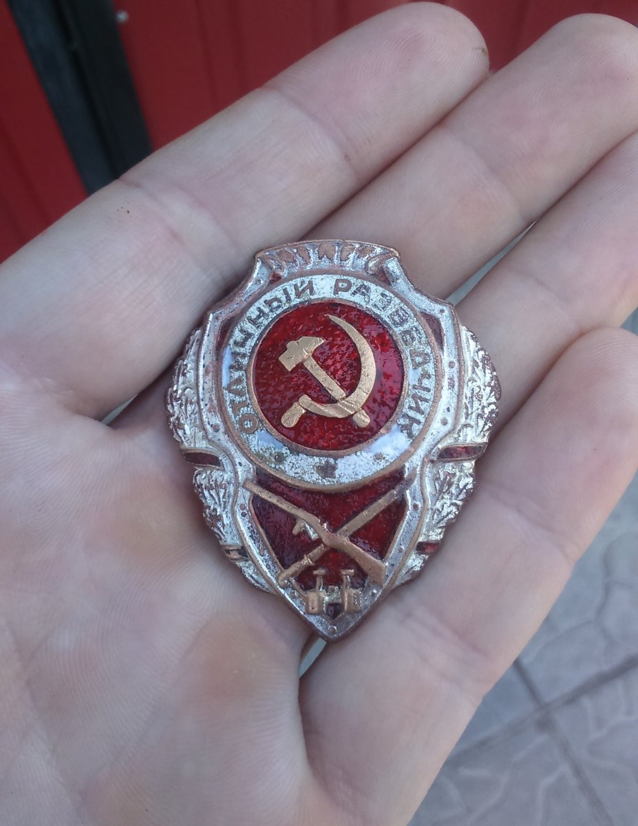 Добрый день! попал мне в коллекцию такой вот отличник. Подскажите пожалуйста тип, производителя, каких годов. Немного привел в вид. был в слабом растворе лимонки и чистил каждые 2-3 минуты средством для мытья плит, убрав при этом всю грязь и окись эмали. обновил старую эмаль, нужно еще пару слоев нанести для полного эффекта.