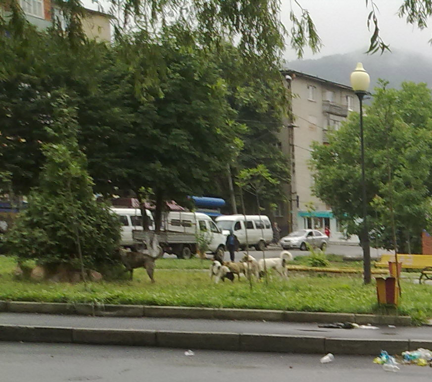 Вот,был сегодня в городе,попалась такая стайка:6 собачек,один из них добрый и милый:mad: буллик...