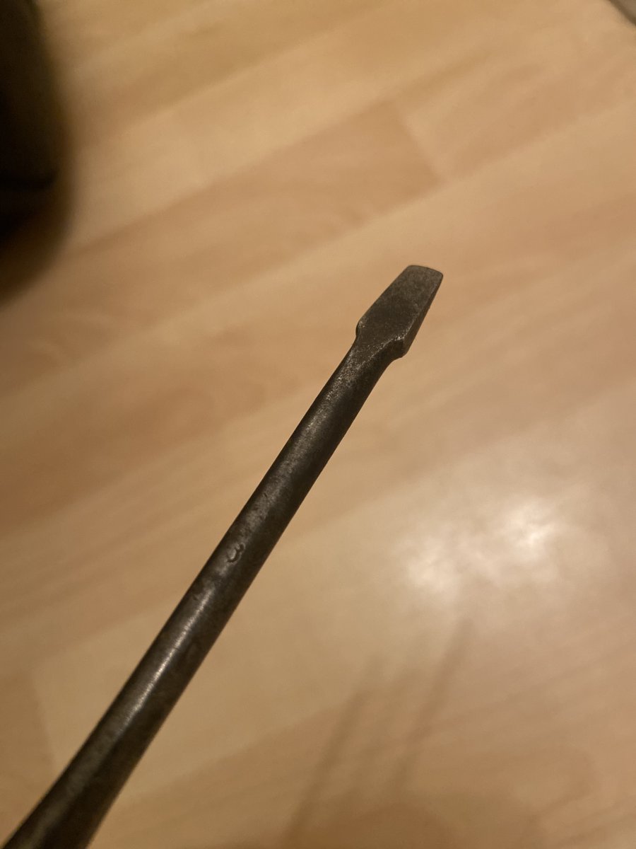 Отвёртка такой формы шла с 40 х и до начала 60годов. Ими комплектовались Виллисы, Газ и прочая техника времён ВОВ. Я находил такие по 41 му году на местах рембатов РККА.