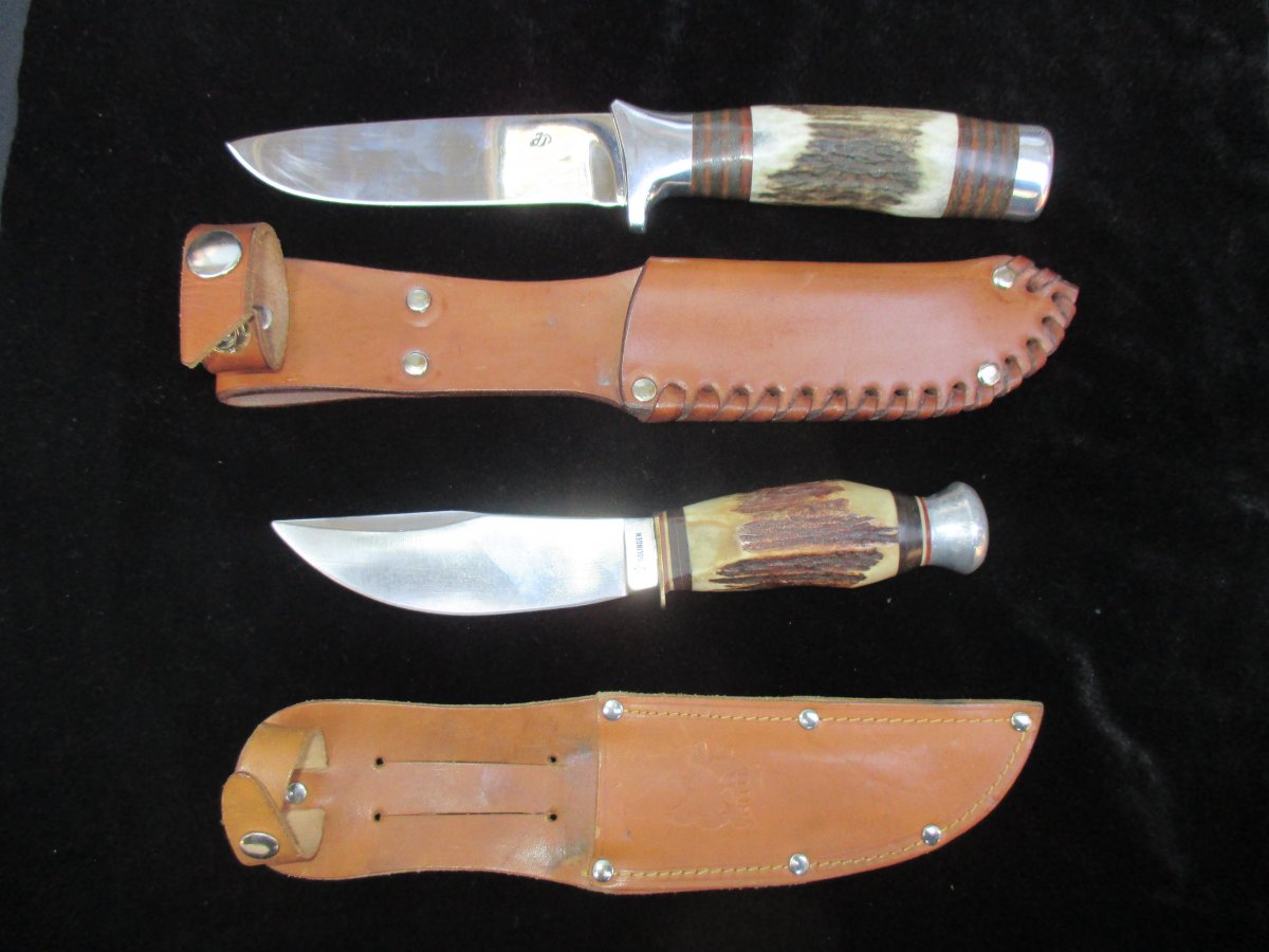 отличные коллекционные экземпляры, для любителей охотничьих ножей. ножи в полно идеале состояние НОВЫХ...!!! ОРИГИНАЛЬНЫЕ...!!! с частной коллекции. чешский нож 80-ых. годов выпуска. костяная ручка с оленьего рога с кожаными, наборными проставками. заточка очень острая заводская. какой точно металл не знаю но качество очень высокое...!!! довольно редко встречается, а в таком состояний крайне редко. ЦЕНА 90 уе. Немецкий Solingen. шкуро съемник. примерно тех же годов выпуска. также состояние нового...!!! рукоять олений рог. достойная и хорошая модель. ЦЕНА 85 уе. желал бы продать оба ножа в одни руки....!!! при покупке пары не много подвинусь в цене...!!! вопросы в личку.