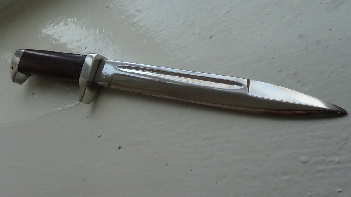 Охотничий нож Германия а-ля "акулий зуб". Был привезён из Германии. Очень качественно подогнаны все элементы! Заводская заточка, режет бумагу как масло. Общая длина-32см клинок-19,5см обух-4,5мм Цена-2650грн.