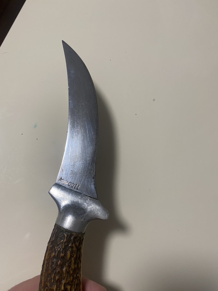 А мне не кажется самопалом. Клеймо ведь есть - с обеих сторон... Если не ошибаюсь, человечек с ружьём. И номер есть, явно для регистрации, хотя не в курсе, была ли в ГДР "обязаловка" рег-ции охот. ножей. Могли набить позже, в СССР. Конфигурация клинка говорит о предназначении - снятие шкуры. ИМХО!