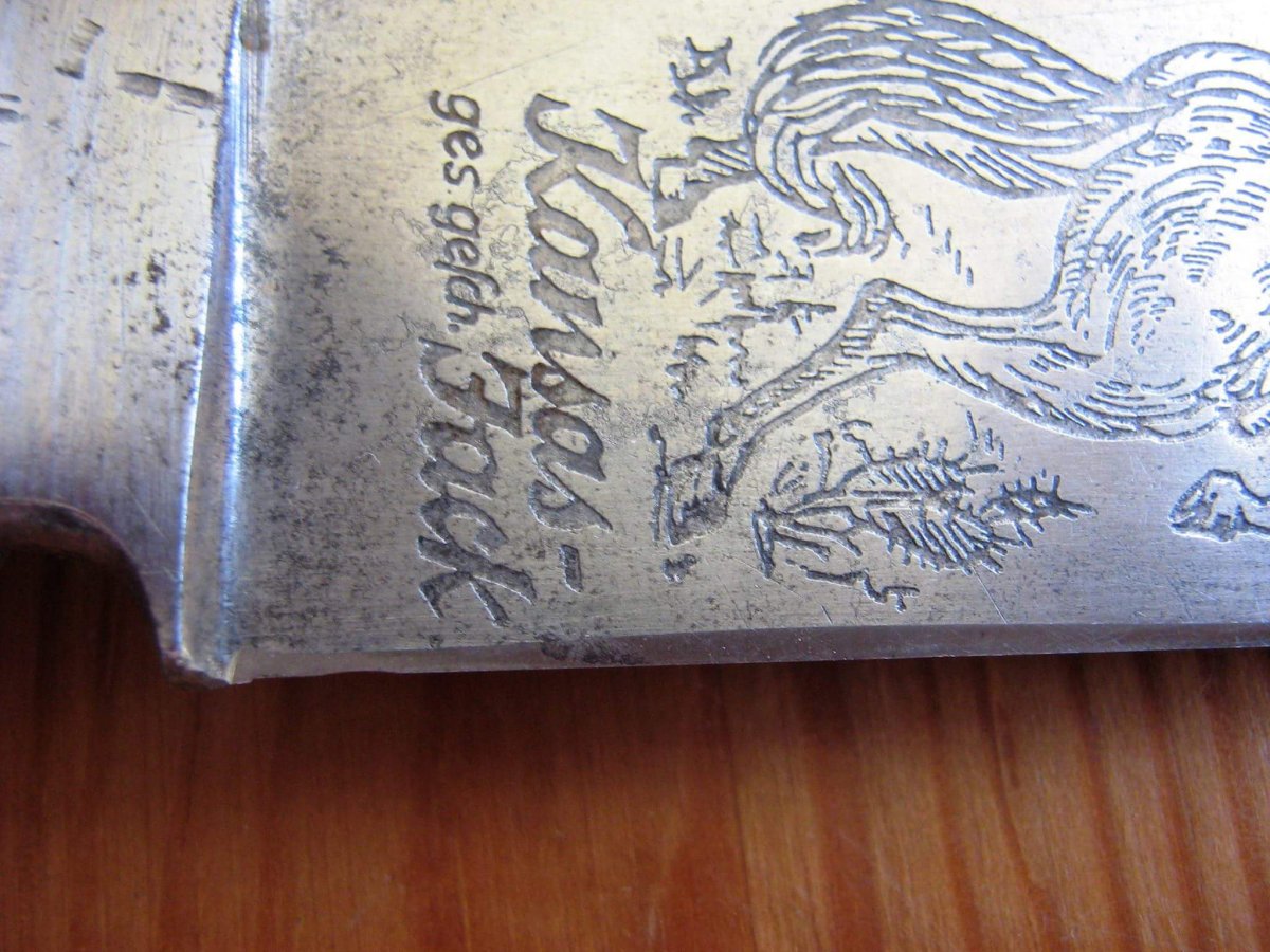 Спасибо за ссылку, но хочу отметить, что в книге правильное клеймо. Сам предмет в теме копия не имеющая отношения к оригиналу, тк само клеймо имеет массу отличий. Не говоря за упоры, травление, рукоять. Буквы U и M в теме имеют поперечные риски, чего нет в клейме представленном по ссылке. У Фишера отражено такое же клеймо как в книге по ссылке. Если я ошибаюсь прошу меня поправить. С ув.