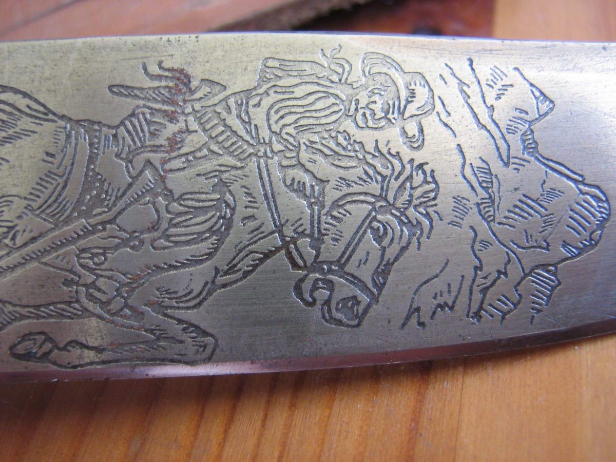 экспортный нож 60е годы,ковбоя пририсовали позже имхо,особо ни чего не стоит 30-40дол.