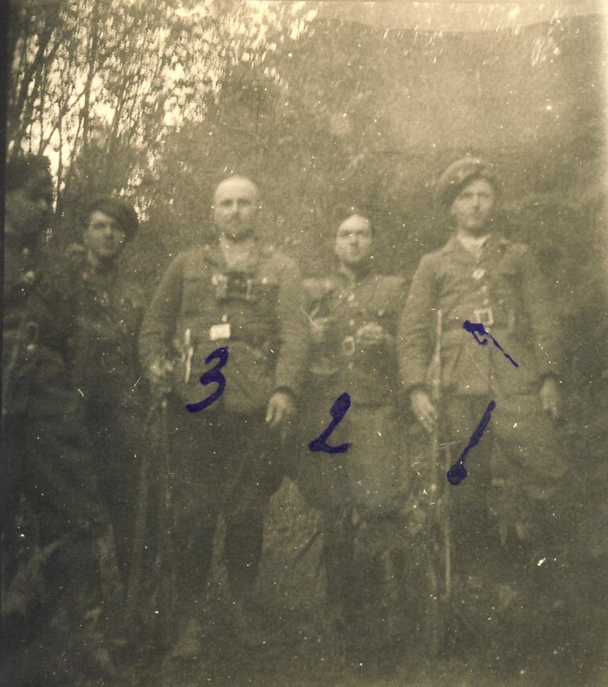 Із двохствокою : Надрайонний провідник СБ «Завадія» - Василь Небесійчук, (с.Жаб`є, нині Верховина) – сидить в центрі. Зліва - стрілець «Голуб» - Михайло Стусяк (?), Праворуч – стрілець «Бистрий» - Михайло Па(?)трюк (обидва з с. Зеленого).Копія фото з газети «Верховинські вісті», 8 жовтня 1999, № 41(6204) http://ounuis.info/events/photo/item/366-kopiia-foto-z-hazety-verkhovynski-visti.html