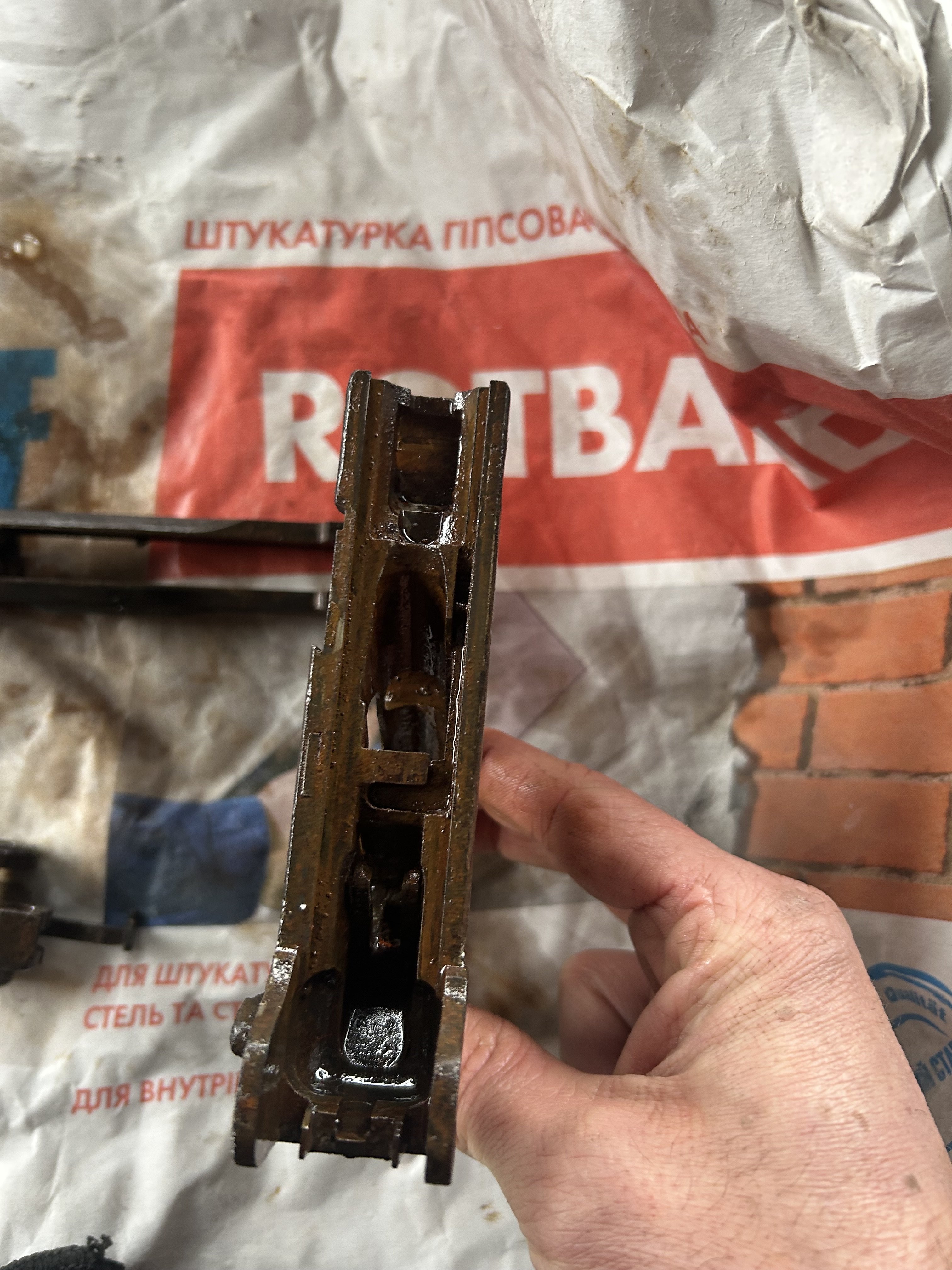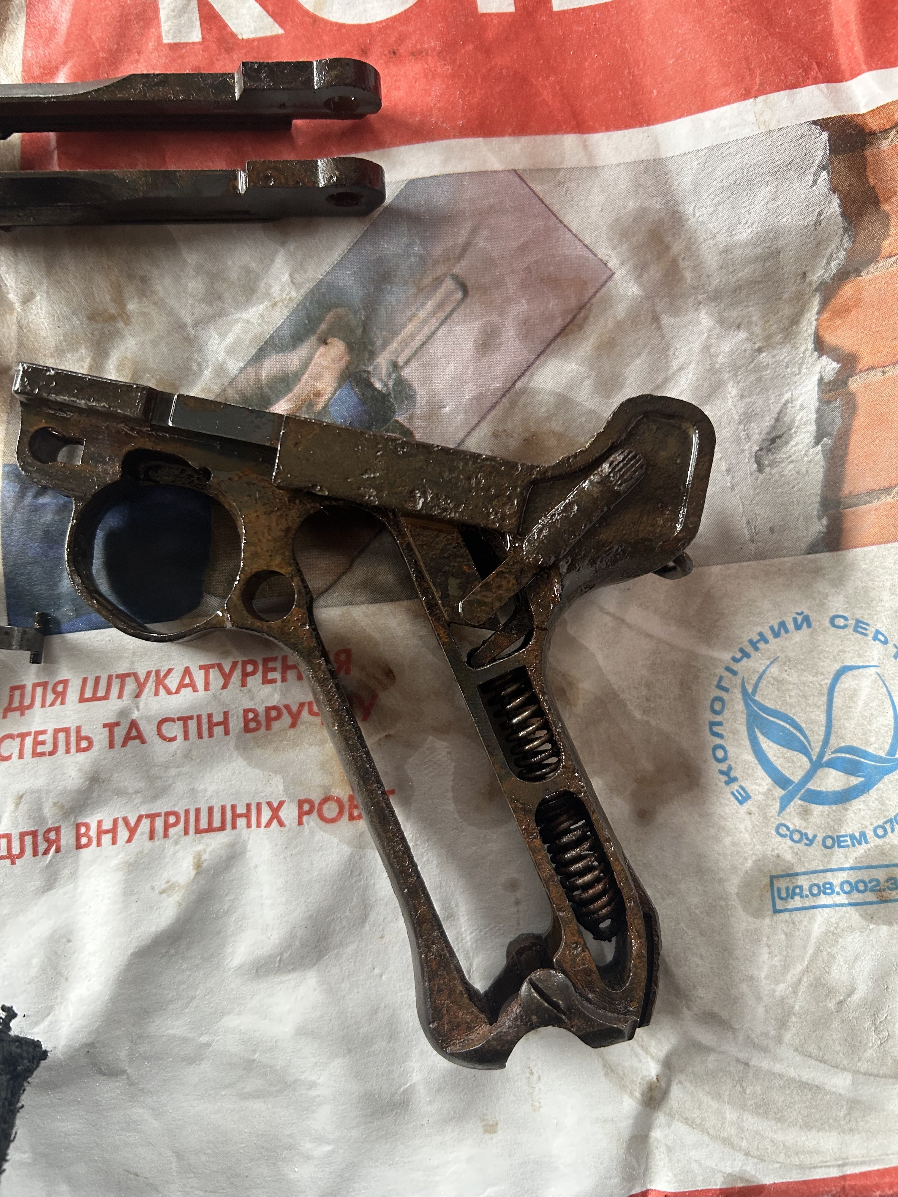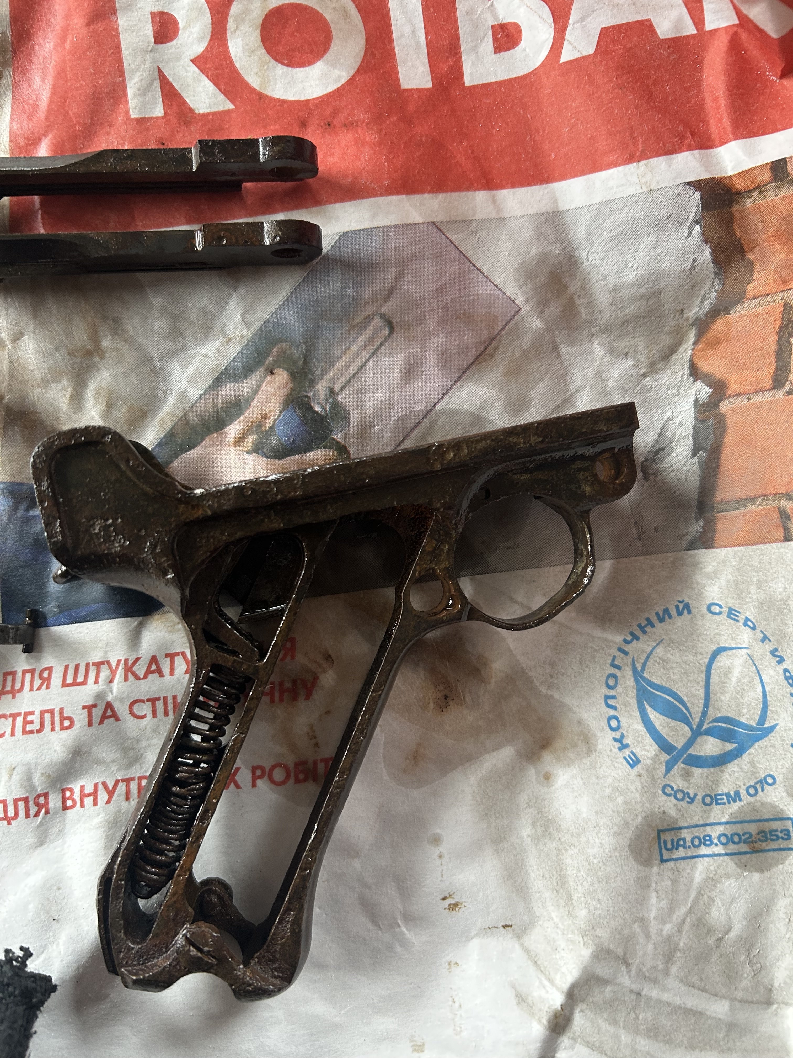 Оцените такой комплект , всё на одном номере , из недостатков отсутствуют накладки, всё собирается двигается, кроме предохранителя надо разработать. Обойма побитая свищами но бодрая! Снаружи побитый ржавчиной внутри в очень хорошем состоянии, год выпуска 1918.из деактивации труба залита мягким металлом, патронник без раковин был патрон.