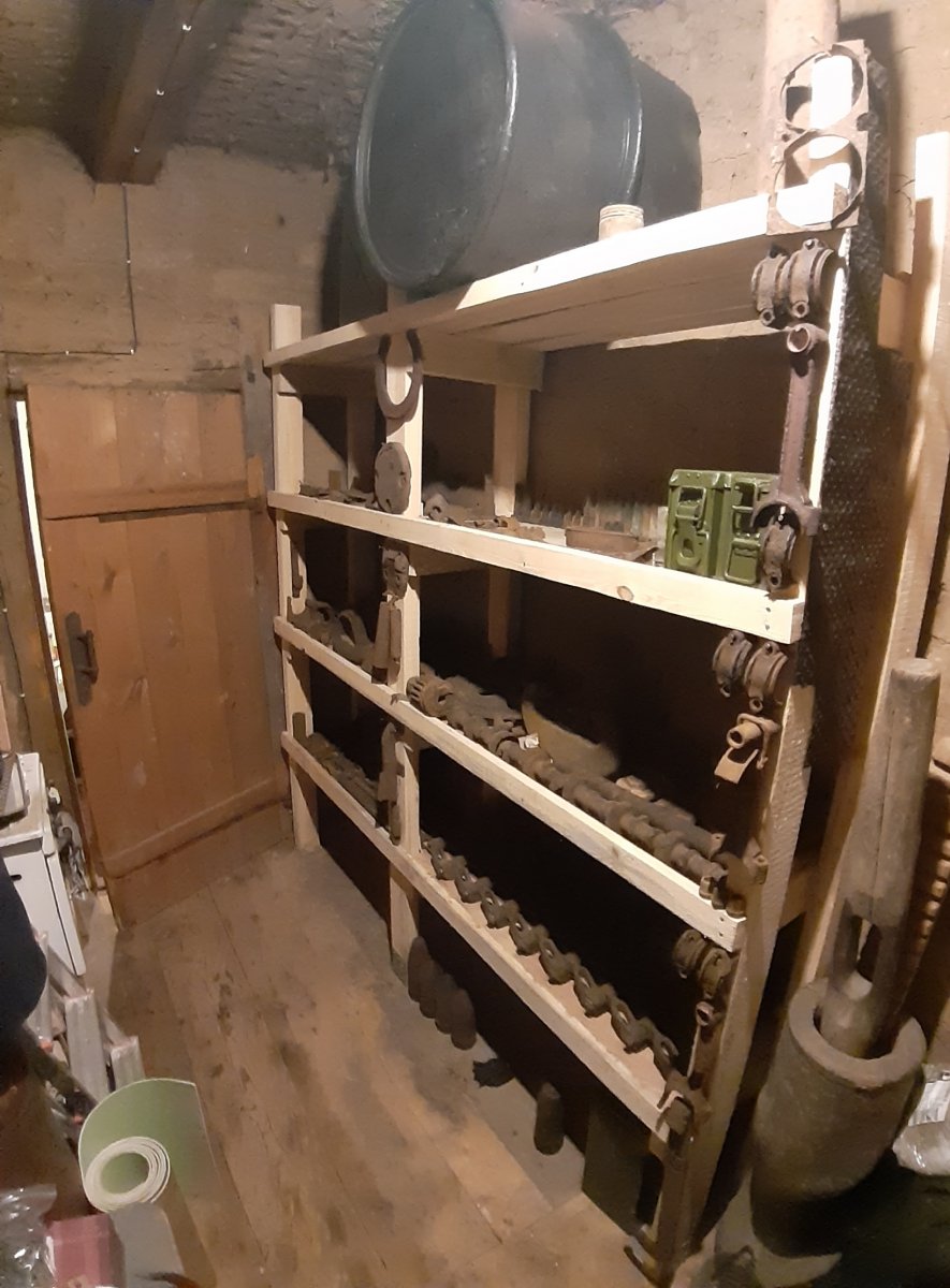Пост 3 Верхний ряд по центру кусок кронштейна надгусеничной полки т-3,штуг-3. Слева от петли люка коромысло двигателя Майбах. Судя по гильзе и двум осколочным и кумулятивному снаряду от танкового орудия КВК-40 то у вас наверное Штуг-3. UPD. Пост 3 левый нижний угол справа и слева от пружины вроде как 45мм советские бронебойные снаряды лежат, если со взрывателями то будьте аккуратны с ними.