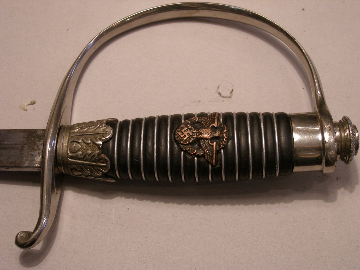 По мне Вы демонстрируете абсолютно подлинный предмет в хорошем сохране. Видны явные следы бытования и отпечаток времени. В каталогах отображаются два вида данного предмета (офицер и унтер-офицер). Естественно данные предметы имеют отличия. У меня в коллекции есть унтер в офицерских ножнах, поэтому пришлось немного поискать информации. Предмет в теме Офицерский палаш полиции обр. 1936 г. Если у Вас есть возможность то запросите информацию имеется ли на дужке снизу и на устье ножен клеймо СС. Если имеется, то это будет подтверждение тому что данный Палаш использовался именно офицером полиции СС. Естественно такой предмет уже будет стоить других денег. С ув.......