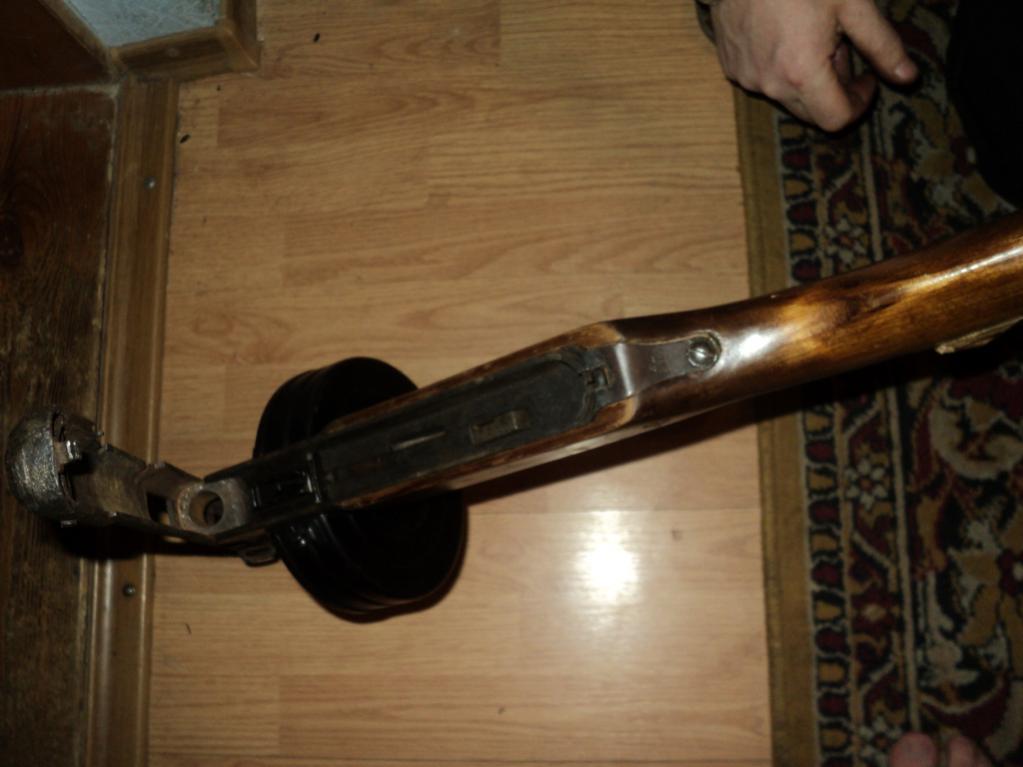 Приложил немного рук..Теперь комплект выглядит таким образом: кожух с защелкой копанина, ствольная коробка и корпус спуска - с учебного макета. Копаный отражатель в рабочем состоянии - в комплекте, но не установлен. Внутренности спуска - крепкая копанина, все щелкает и переключается, спусковой крючок и переключатель режима огня - с учебного макета. Диск пиленый, но комплектный. Номер на ствольной коробке и спуске одинаковый ИД 9307.Общая цена - 800 грн. и пересыл..