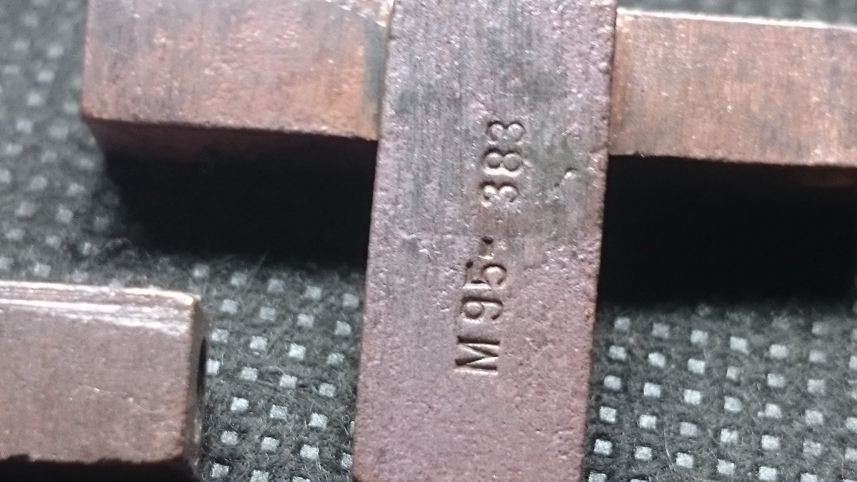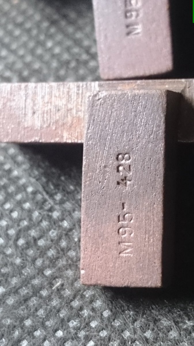 По сигналу и ощущениям бронза, или медь. В меньшем отверстии нарезана резьба, все фрезеровано на приличном уровне. Присутствует маркировка - М95-428 и М95-383.