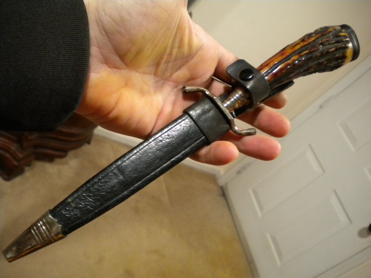 я думаю, что клин на ноже 1 немного укорочен из-за того, что конец был обломан, поэтому и такая странная геометрия, и ножны поэтому длиннее самого клина. а никель наложили уже потом для декора. а так, как по мне - это оригинальный окопник со следами "творчества". по охотнику всё окей. такие ножи очень охотно применялись в пмв, т.к. штатных ножей не хватало и они приобретались за свои деньги. эти ножи классифицируют, как Grabendolche auf eigene Beschaffung - окопные ножи, приобретённые на собственные средства. такая же история была и с биноклями: пока в 1916 не появились штатные Fernglas 08, брали под руку цивильные охотничьи.