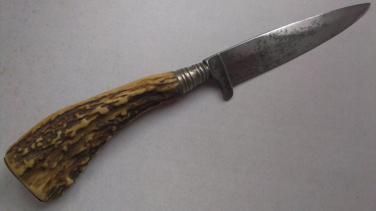 Охотник выпуска после 15 года , если голова приклеена а не на гвоздиках то недорогой вариант . Рог от времени садится и часто требуется клеить по второму разу . Изначально это нож "немецких романтиков" , типа у баварцев есть никер а такой ( или с козьей ножкой ) у остальных немцев . Городским жителям носить бауер.мессер западло . В Германии охотник это не как в россии (промысловик) а "свободный" патриот , что то типа российского казака . Модель популярная , выпускается но сих пор , первый вариант выглядел вот так .