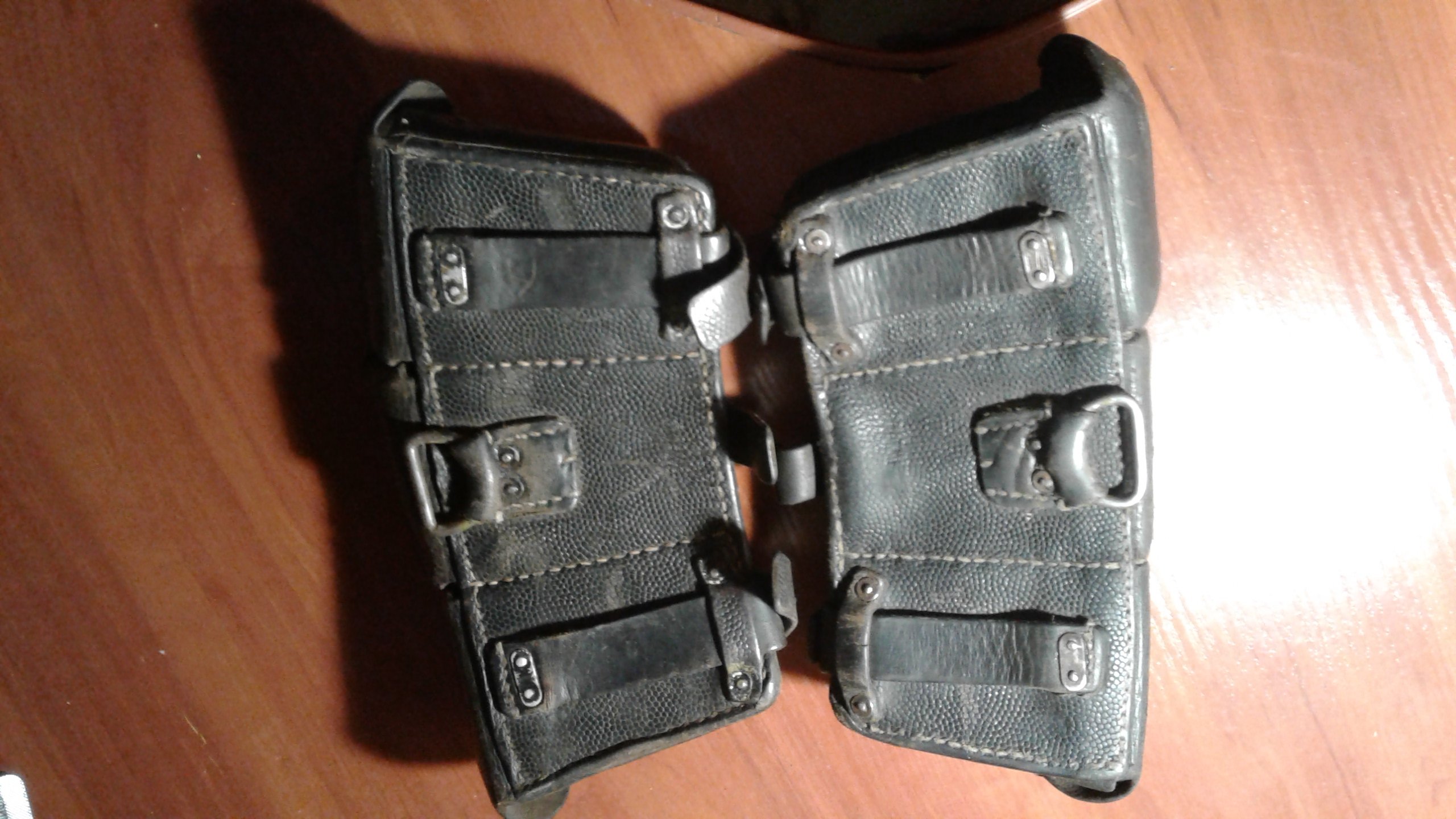 Доброго! Прошу оценить для продажи такою пару ранніх подсумков, один 41 и 42 год,кожа мягкая нитка не трухлая, есть клейма,перегородок нет,домашнего хранения!