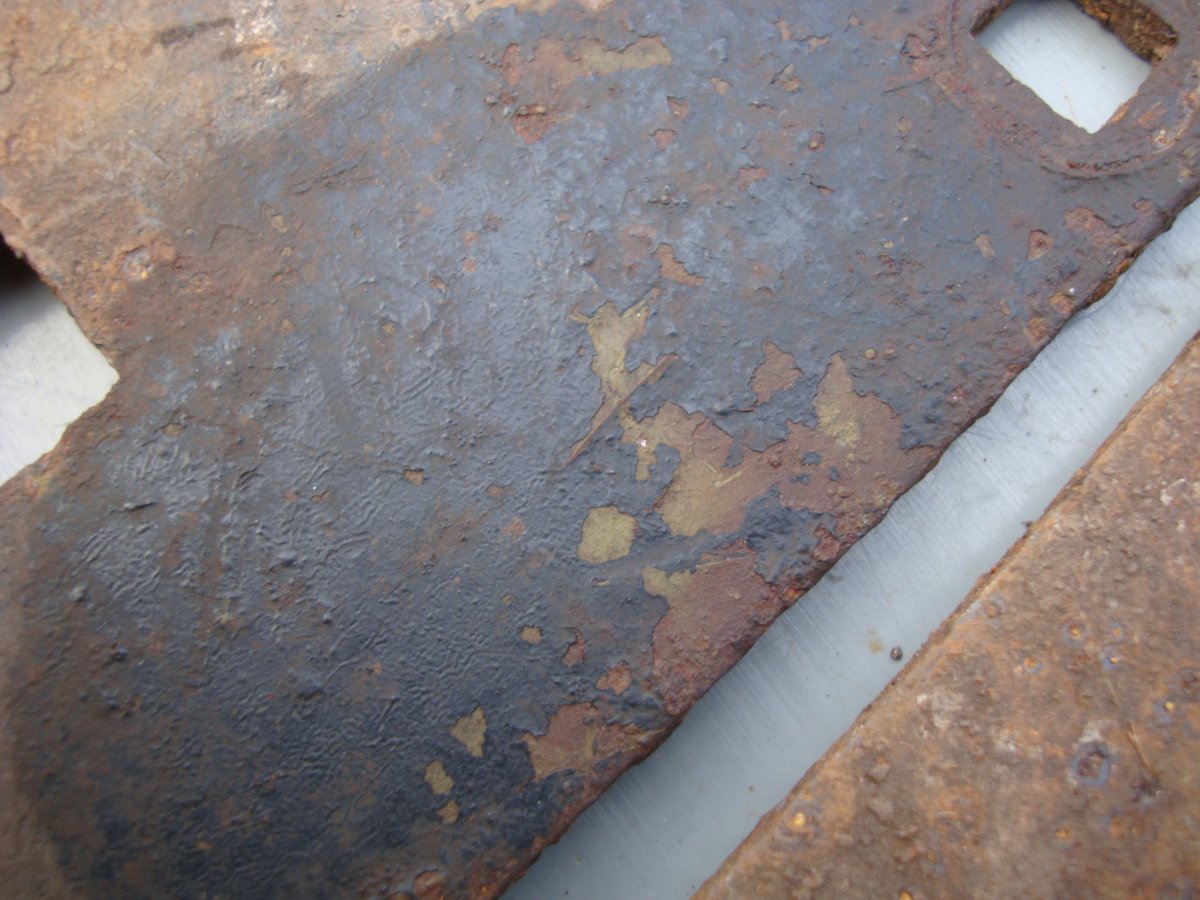 и такая пара пластин ...около 4 мм толщиной ...два слоя краски... зелёный и чёрный сверху ...