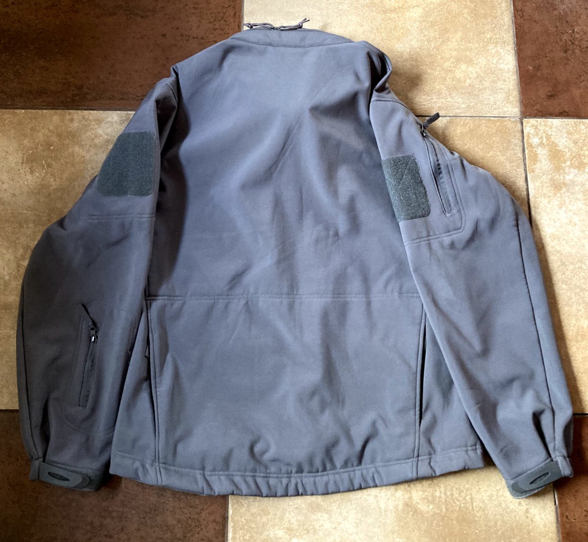 В результате очистки шкафа решил выставить на продажу пару софтшел курточек. 1. Софтшел с флисовой подкладкой от бренда Tom Tailor черного цвета, размер XL (см замеры). Встроенный капюшон с удобной фиксацией на спине, два больших боковых кармана и один поменьше на груди. Утяжки на капюшоне. Состояние на троечку: потертости ткани на рукавах и у карманов, разводы от стирки (думаю, после еще одной исчезнут), пара коротких задиров на швах, основная молния иногда туго застегивается. Замеры: полуобхват груди 53 см, рукав от подмышки 50 см, высота 77 см. Цена - 300 грн. 2. Тактический софтшел от M-Tac, размер XL в цивильном сером цвете. Очень удобная курточка с кучей фич, добавлю видеообзор на нее: Хорошее состояние, полусветлые пятна (на груди и рукавах) и легкая кашлатость внизу другого рукава. Замеры: полуобхват груди 60 см, рукав 56 см, высота 83 см. Цена - 600 грн.