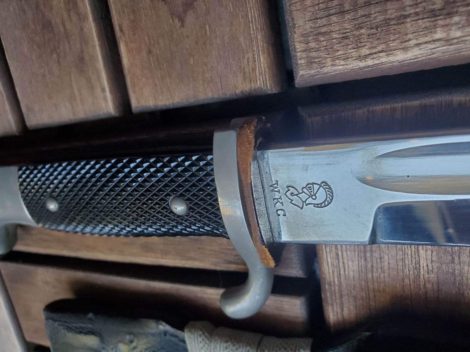 Все оригинал. Если это длинный штык с полуторной заточкой, то редкий штык,но не дорогой. Только этот производитель делал длинные с полуторной.