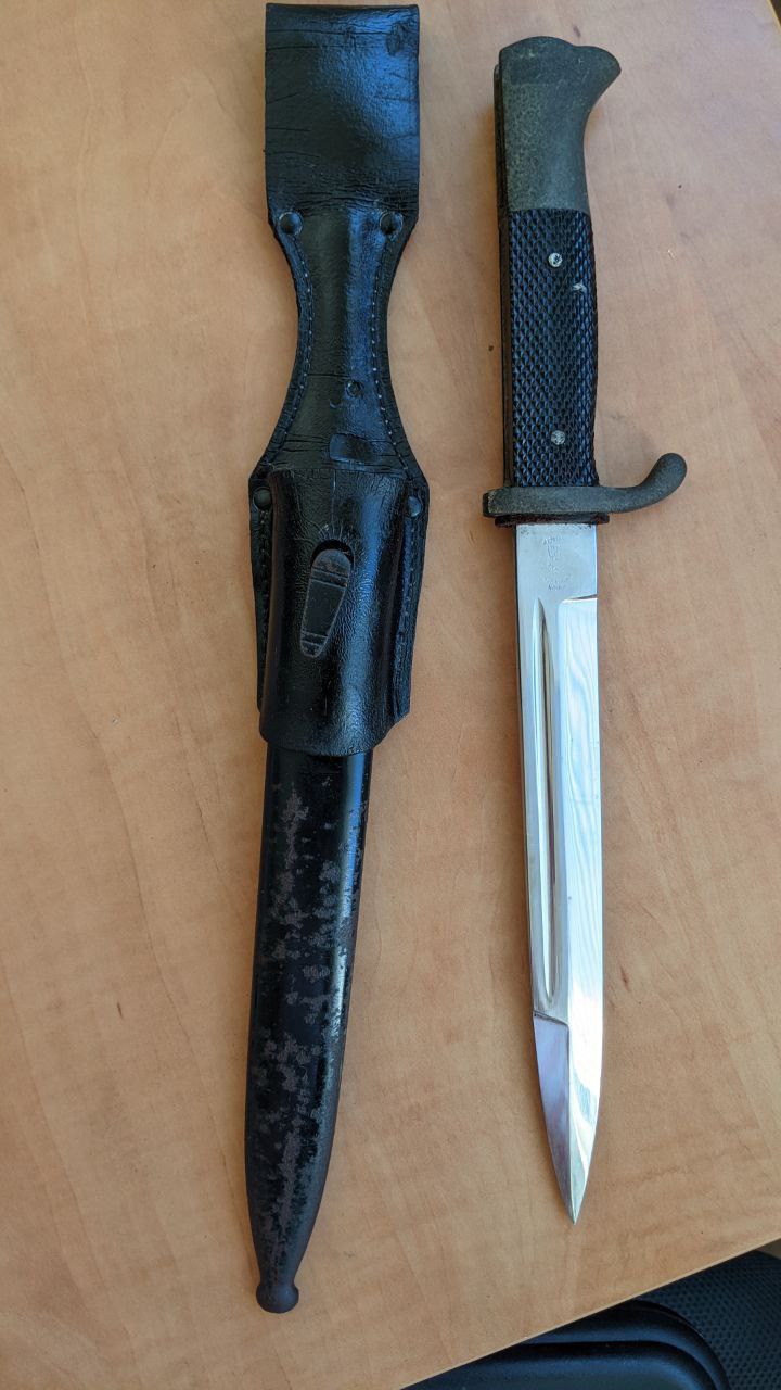 Вітаю. При ремонті старого будинку, в стіні були виявлені кинджал са, парадний штик, кокарди і паперові документи. Судячи з схованки речі належали одній людині. Цікавить приблизна реальна ціна на штик в такому стані як на фото.