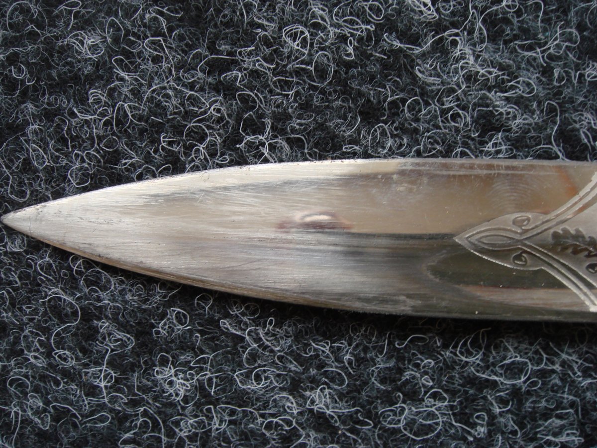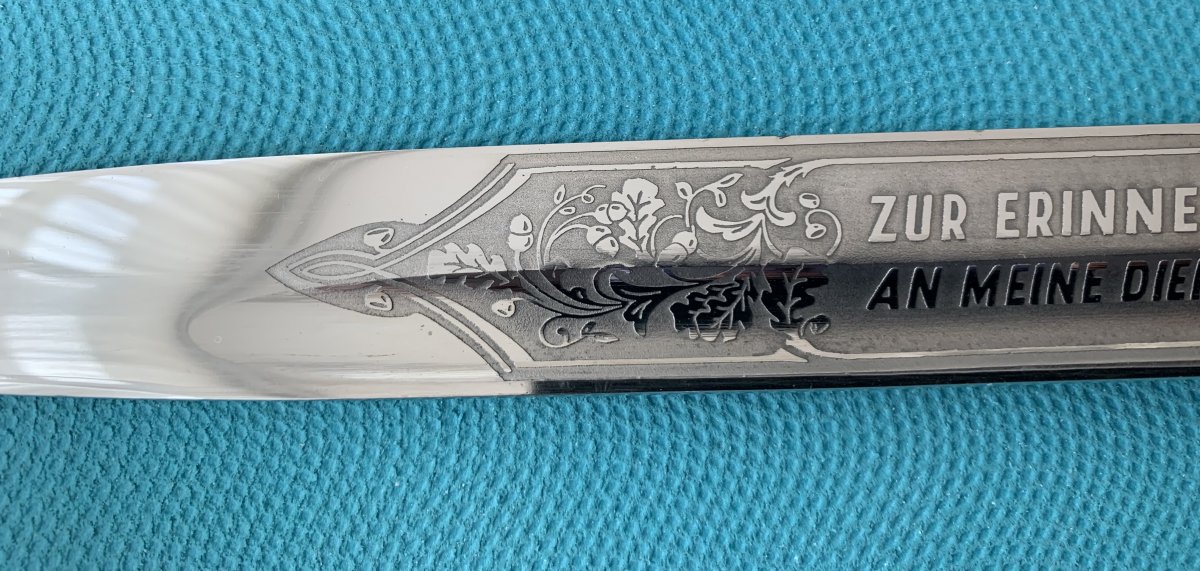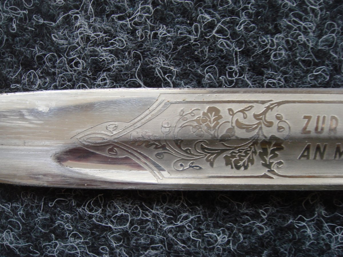 Тема получилась немного недосказанная ввиду того, что было непонятно по заклёпкам на накладках штыка Э.Пака. Хочу поставить в этом вопросе точку, и сказать, что заклёпки имели место на поздних парадниках этого производителя. Как пример привожу травлённый штык в делюксовом исполнении Эрнста Пака. Считаю штык ТС поздним и оригинальным без вмешательств. Такое травление как в теме мне попадалось всего 2 раза за 15 лет.