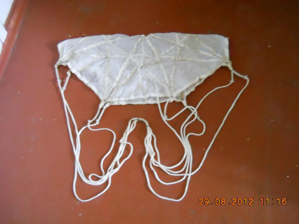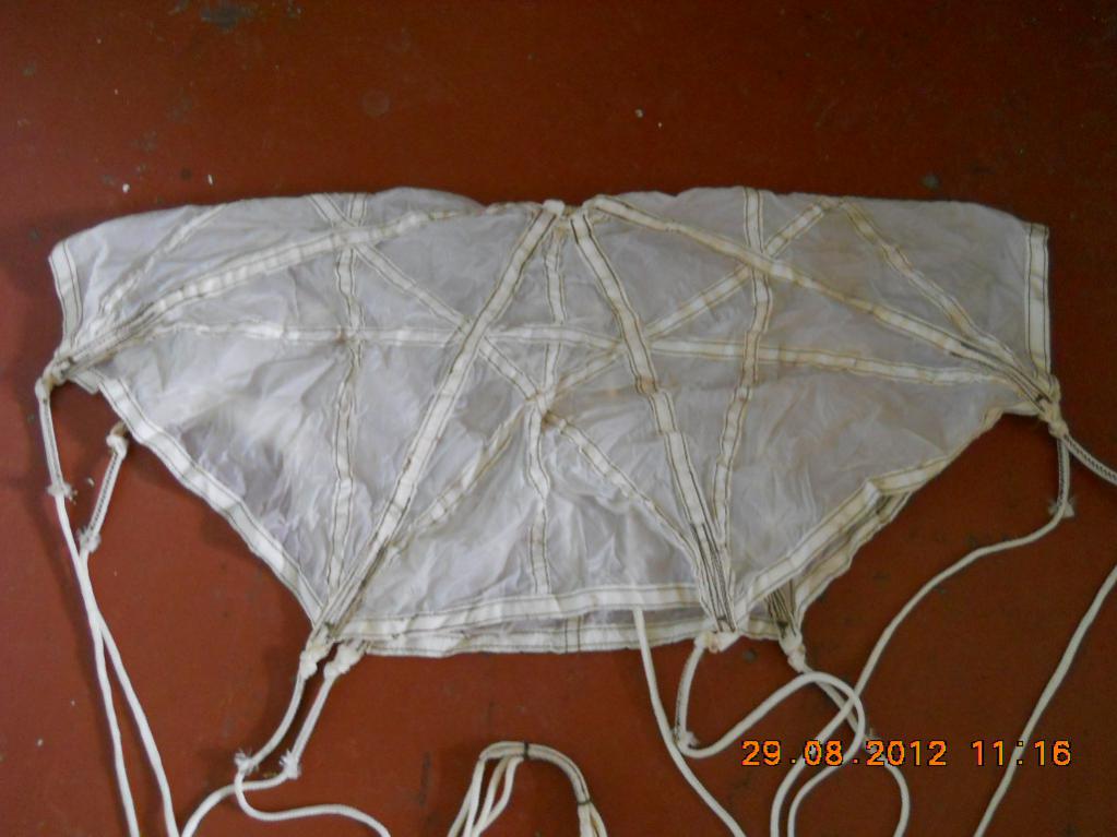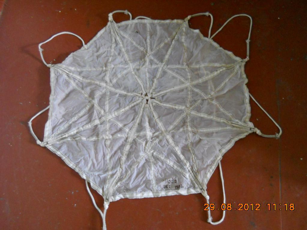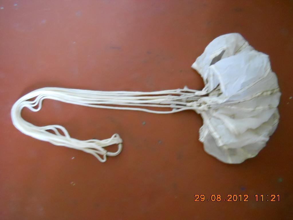 Парашютик вытяжной.Материал-шелк.Состояние-хорошее,дефектов нет.Диаметр купола-76см,длина строп-80см.Цена-150грн.+пересыл.Вопросы,предложения в личку пожалуйста.