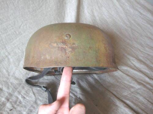 Заметте, декаль на первом (оригинальном) шлеме находится ровно под заклепкой а декаль Вашего немного смещена...