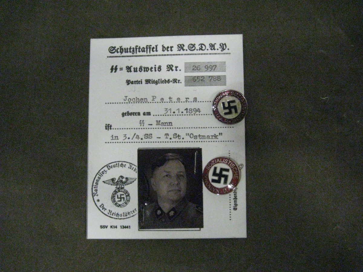 Добрый вечер, все же посмотрим в корень вопроса, логично ли бегать на поле с партийником? Взять к примеру вас, Хаймевеер, как много рядовых л/с Данцигской самообороны СС носили знак? и дальше: Вы видели часто на солдатах Тотенкопф в период 41-45 на фронте партийный знак? Я лично, только 2 -3 фото, и из них только один рядовой, да и тот, мне кажеться не из самой дивизии. И такой вопрос, а зачем носить партийный значек реконструкторам СС, которые празднуют 9 мая? С Ув.