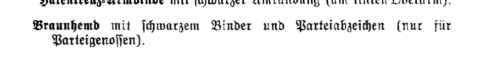 Служебная форма СС. Организационная книга НСДАП. Положение о форме одежды CC. 1937 г. ст.432 Коричневая рубашка с чёрным галстуком и партийным значком (только для членов партии).