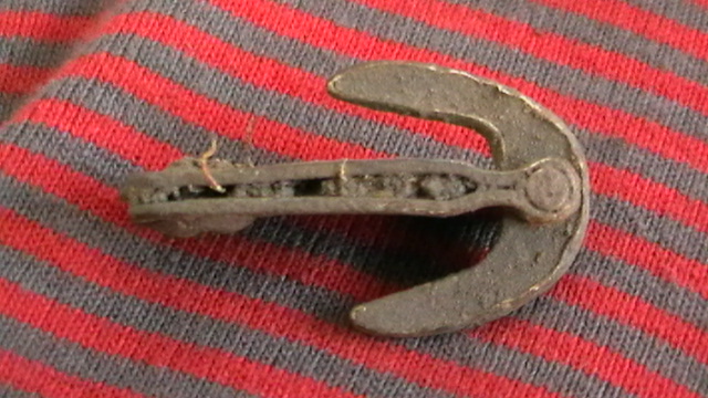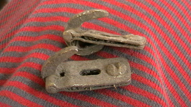 Привет-ю!Найдены в лесу..вроде что то знакомое..возможно ошибаюсь-не крючки ли это для фиксации маскир.сетки к каске (нем.) Длина-2.5см.