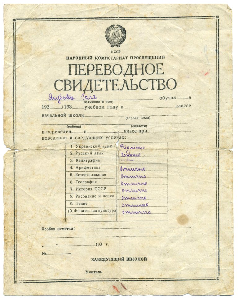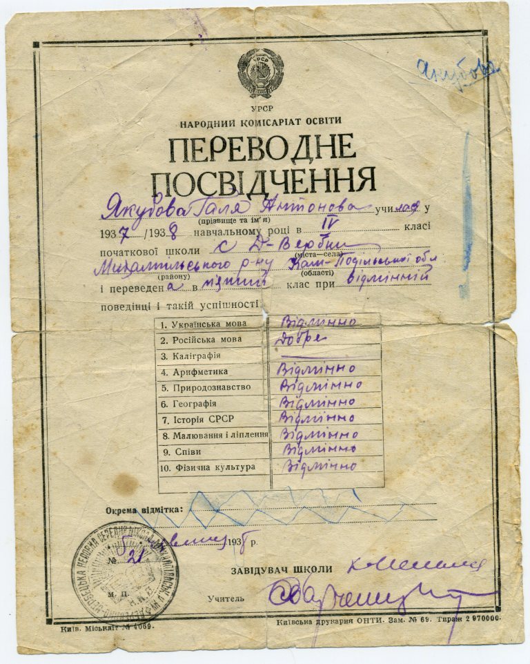Доброго. Який яскравий приклад "угнєтєнія" російської мови в Україні щє у 1938 р. і, не менш, яскравий приклад поступової підміни національної мови на "братську" російську!