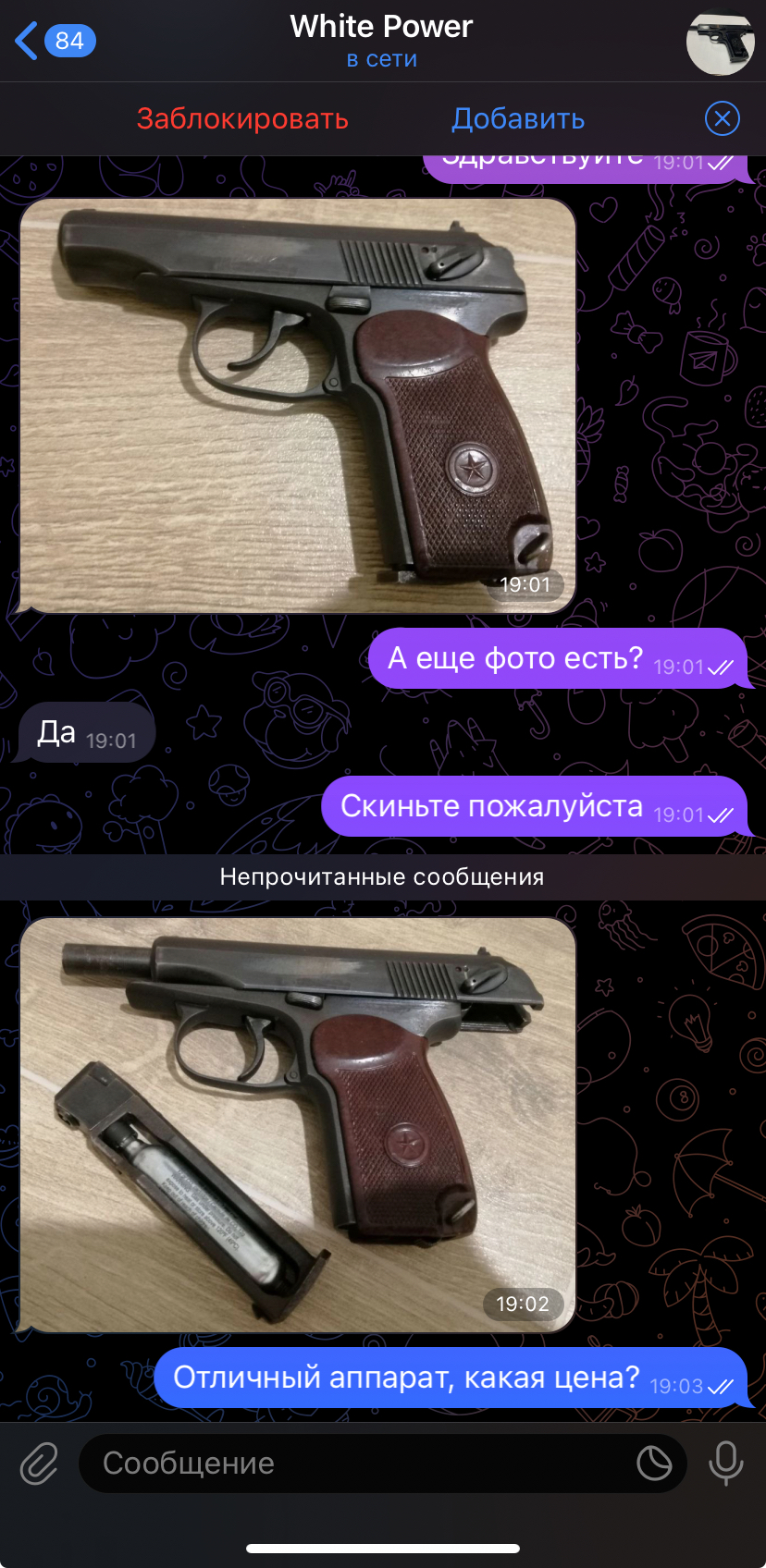 виставив оголошення що хочу придбати пневматичний ПМ. Пише дура в приватні та просить телеграм.