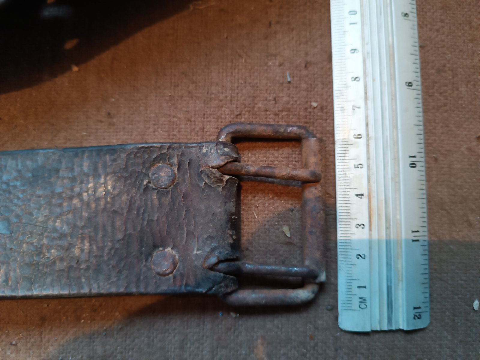 Пряжка не от солдатского ремня РККА. Думаю стоит начать поиск с идентификации самой пряжки - такие стальные двушпеньковые по-моему не во многих армиях использовались.