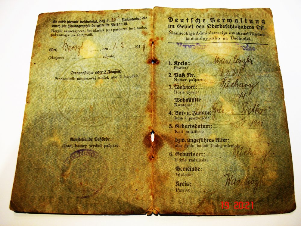 Немецкое удостоверение, гражданки Белоруссии, по сути приложение к её национальному паспорту, для оккупационной администрации.
