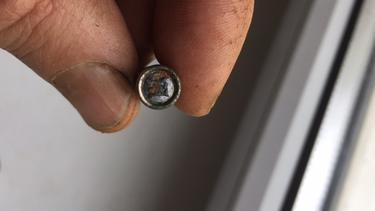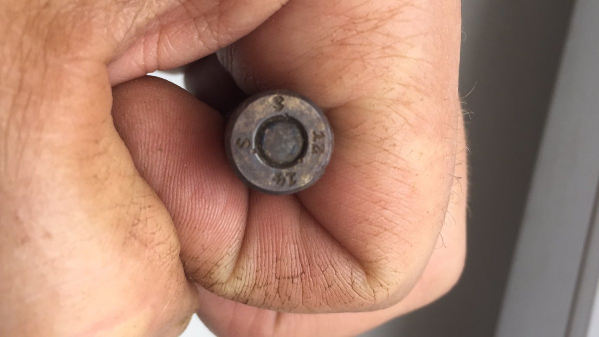 Добрый вечер,уважаемые камрады!Быть может,кто подскажет чей это патрон?Благодарю Вас!На фото имеется пуля с торца-там имеются какие то символы.....