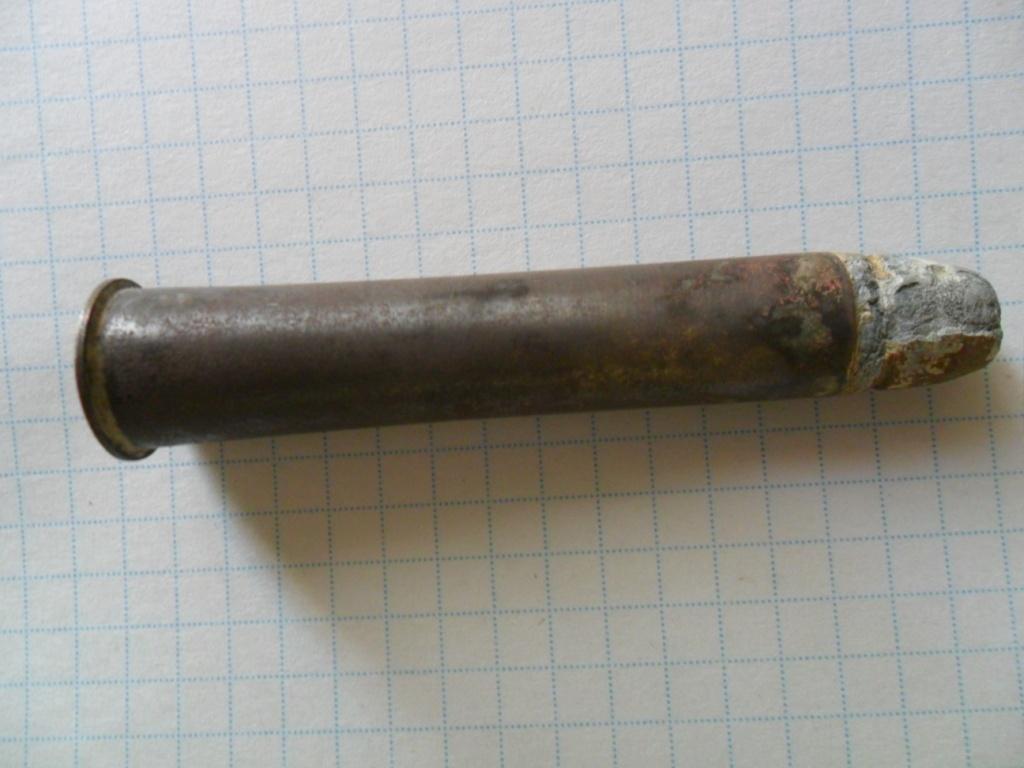 Штангенциркуля немає, приблизні заміри рулеткою: довжина гільзи 59 мм, ширина донця 20 мм, калібр 11-12 мм.