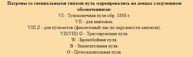 Там у Вас не много не верная информация относительно VII и VII Z, это не различие типа одни для винтовок, другие для пулеметов, а информация о порохе. VII снаряжены кордитом, VII Z снаряжены нитроцеллюлозным порохом ввиде прямоугольных пластикнок.