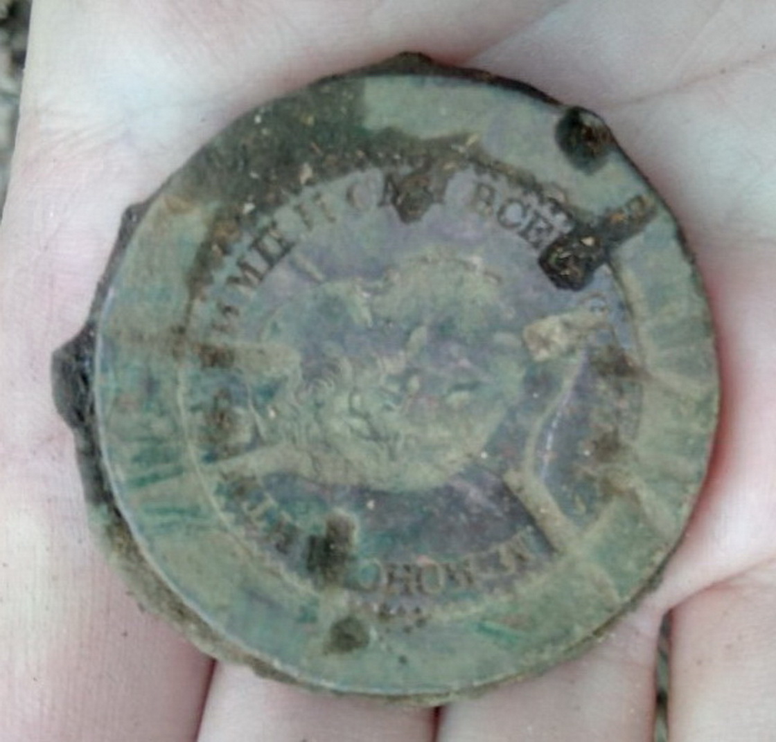 То, что в теме - не монета, так-как изображение зеркальное. Матрицей скорее-всего не является..Успел ли кто-то сделать в своё время печать - вопрос спорный..Надо предмет в теме отмочить и ОЧЕНЬ ОСТОРОЖНО почстить(с обеих сторон). В любом случае, думаю очень редкий и необычный предмет окажется, даже если это что-то типа заготовки под копию.