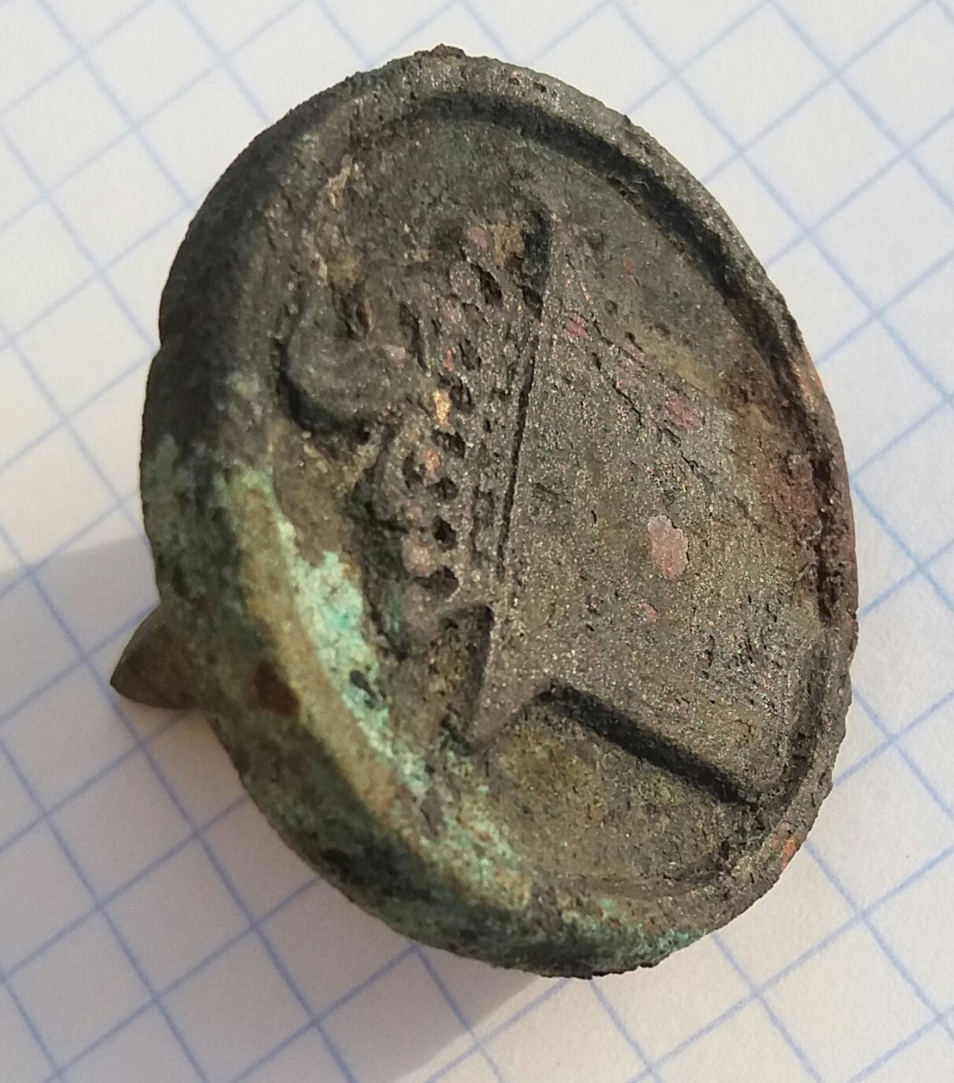 Очень убитая печать.Тяжело определить.Могу предположить ,что если в верху над короной собака , то это могут быть Долинские :https://ru.wikipedia.org/wiki/Долинские Хотя в польских гербах борзая собака использовалась Побог (Pobóg, Pobodze) : https://pikabu.ru/story/geraldika_polskie_dvoryanskie_gerbyi_chast_1_5262344