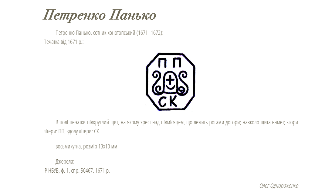 Точно такими же как на представленном экземпляре самобытными гербами пользовалась козацкая старшИна уровня от сотника и выше, начиная со ср. 17-го и аж до вт. пол. 18-го в.в.